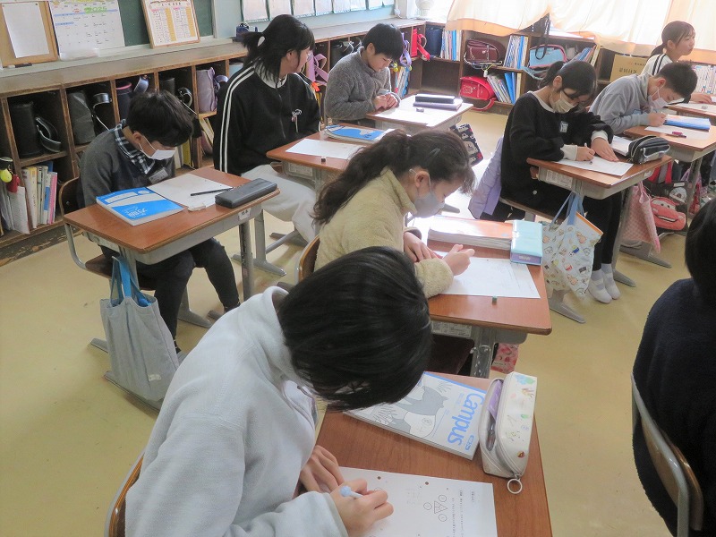 湖東中学校の先生に、数学の授業をしていただいたり、学校生活やきまりなどについて話をしていただいたりしました。数学の奥深さを学んだり、来年度から新しくなる制服の話を聞いたりして、中学校生活が楽しみになったようです。